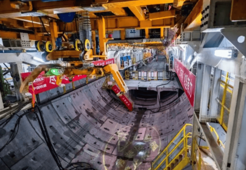 “天佑号”盾构机自2025年7月底始发以来,在该隧道工程中连续8个月掘进进尺超计划目标,最快月度掘进达306米,单日最高进尺16米。该隧道工程施工区段地质条件复杂、环境敏感点密集,掘进全过程需精细控制地层扰动,同时面临超深竖井材料吊运量大、作业空间受限等多重制约。