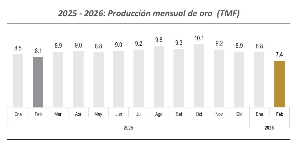 维度网讯,2026年2月,秘鲁全国黄金产量为7,421,153克精金,较去年同期的8,071,658克精金减少8.1%。
