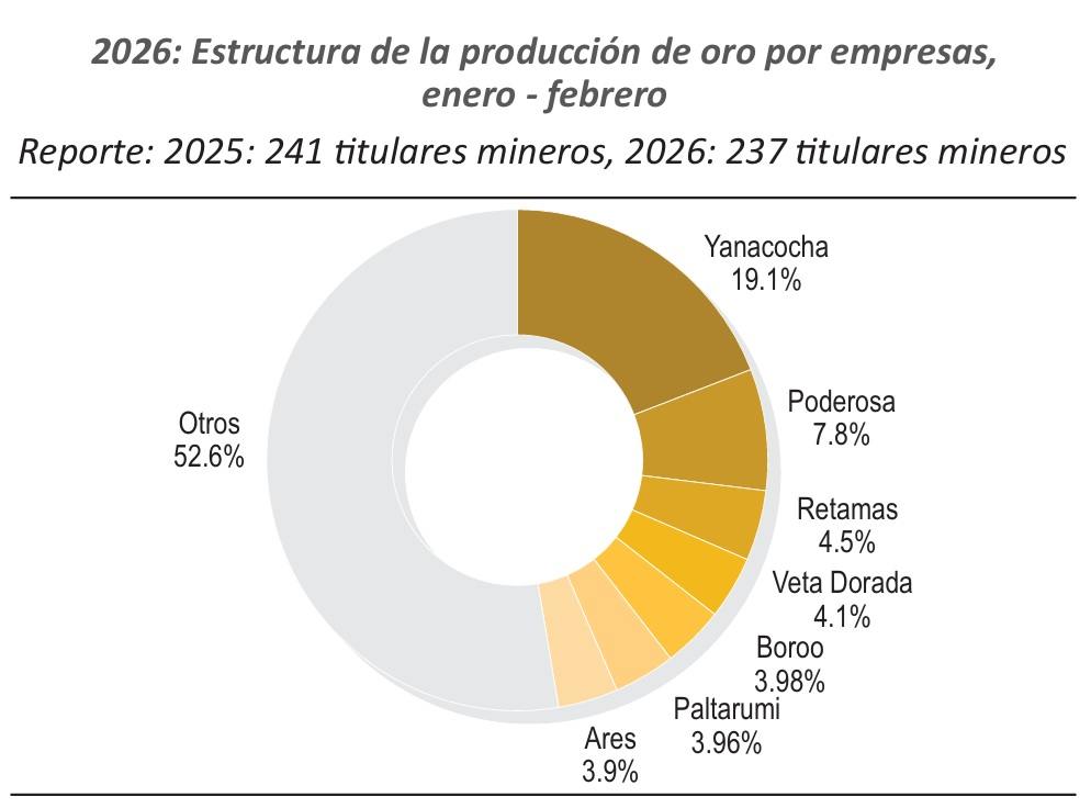 2026年前两个月累计黄金产量达到16,233,139克精金,相比2025年同期的16,563,579克精金下降2.0%。产量下滑主要受Minera Boroo Misquichilca S.A.产量减少27.1%影响。