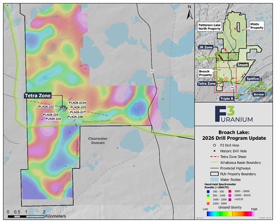 加拿大F3铀业公司Tetra区块钻探发现铀矿化,验证地质模型