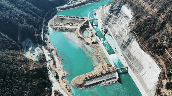 中国四川大渡河老鹰岩二级水电站成功截流