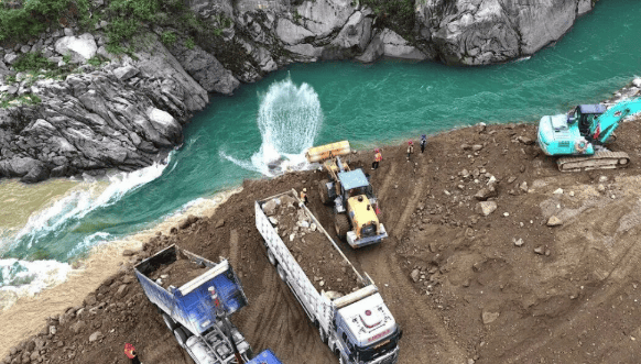 中国四川大渡河老鹰岩二级水电站成功截流