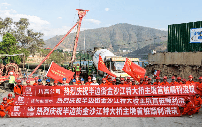 中国四川高速公路攀盐段金沙江特大桥主墩首桩浇筑完成