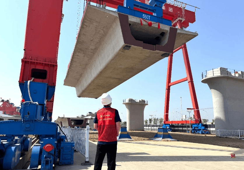 中国河北石雄铁路项目首榀箱梁架设完成转入上部结构施工