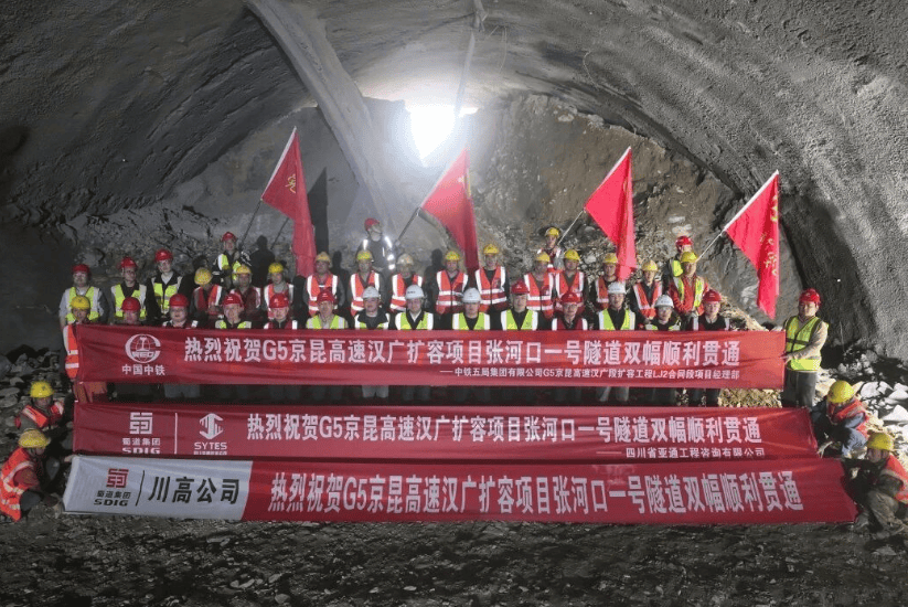 中国四川京昆高速汉广扩容工程张河口1号隧道实现隧道贯通