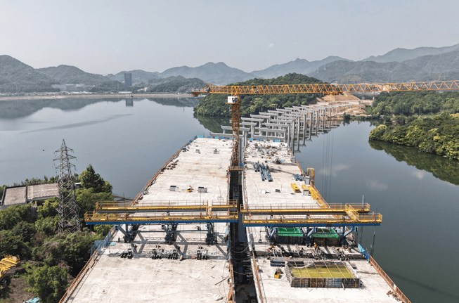 中国甬台温段高速公路改扩建宁波南段杨梅岭水库1号桥主跨合龙