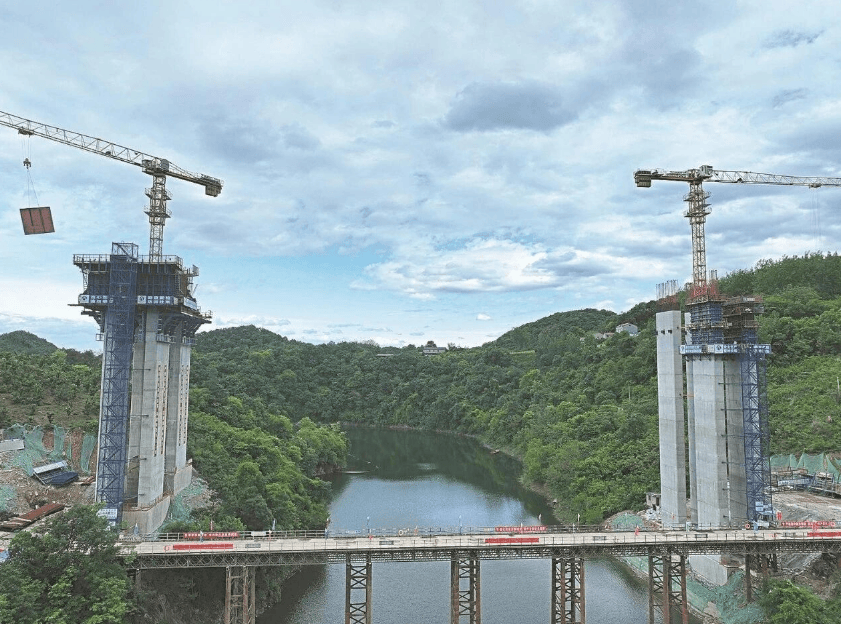 中国平宜高速公路襄阳段云台山水库大桥6号主墩封顶
