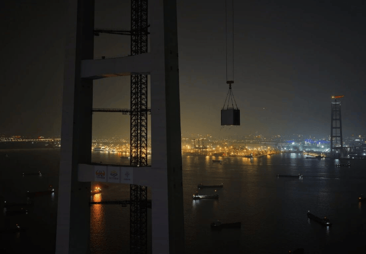 维度网讯,4月26日晚,由中国中铁山桥参建的粤港澳大湾区狮子洋通道关键控制性工程狮子洋大桥完成主塔最后一道钢横梁合龙。狮子洋通道位于中国广东省,西接广州市南沙区,东连东莞市沙田镇、虎门镇,全长约35公里,采用上下双层16车道设计。