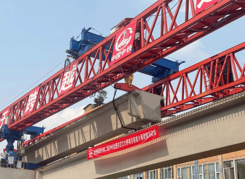 中国泸州龙透关沱江大桥首片预制箱梁架设完成