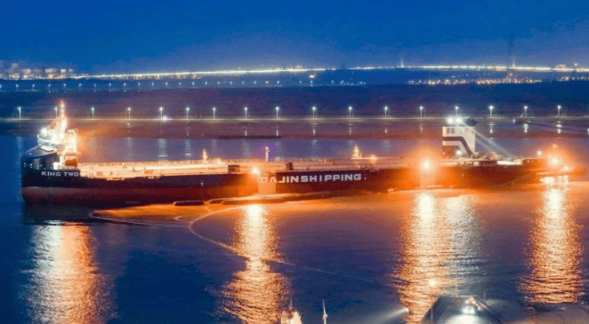 据了解,2026年4月19日,大金重工盘锦海工基地 40000 吨甲板运输船KING TWO轮顺利吉水。该船是盘锦基地成功下水的第二艘大型甲板运输船,此前同型首制船 KING ONE 轮已圆满完成首航任务,充分验证了该船型的航行性能与可靠性,彰显了公司在大型高端船舶建造领域的雄厚技术实力与卓越建造能力。