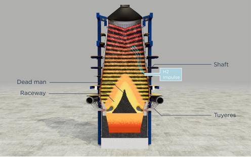 安装有 SIP 技术且氢气被注入炉身的高炉图示