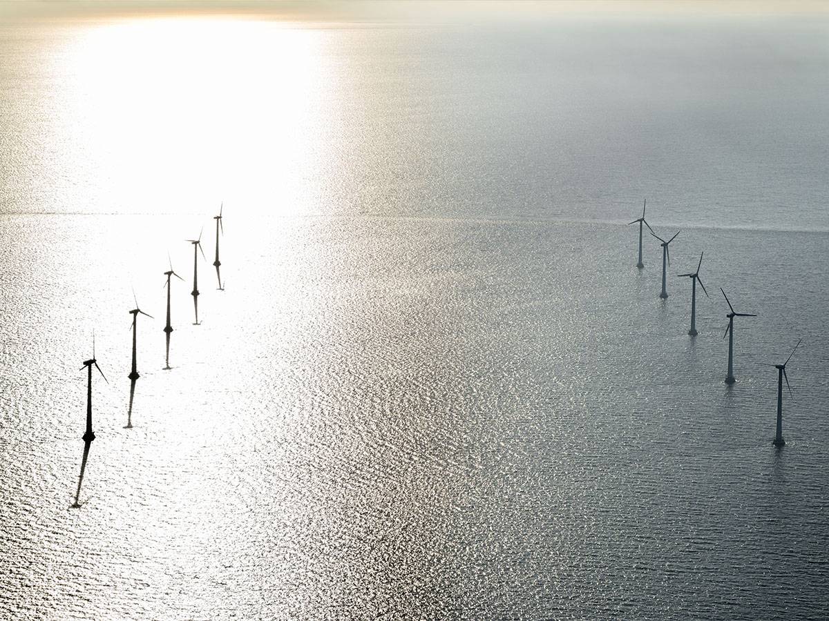 丹麦 Tunø Knob 海上风电场的维斯塔斯风力涡轮机。