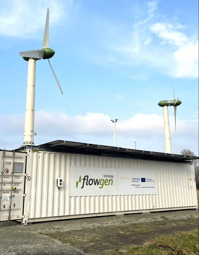 2025年,德国下萨克森州国有港口运营商下萨克森港口公司(NPorts)在埃姆登港正式推出了第一台集装箱风力涡轮机。该系统集风能、光伏发电、电池存储和汽车充电功能于一体,位于港口正门,成为欧盟资助的INTERREG项目REDIIPorts的一部分。