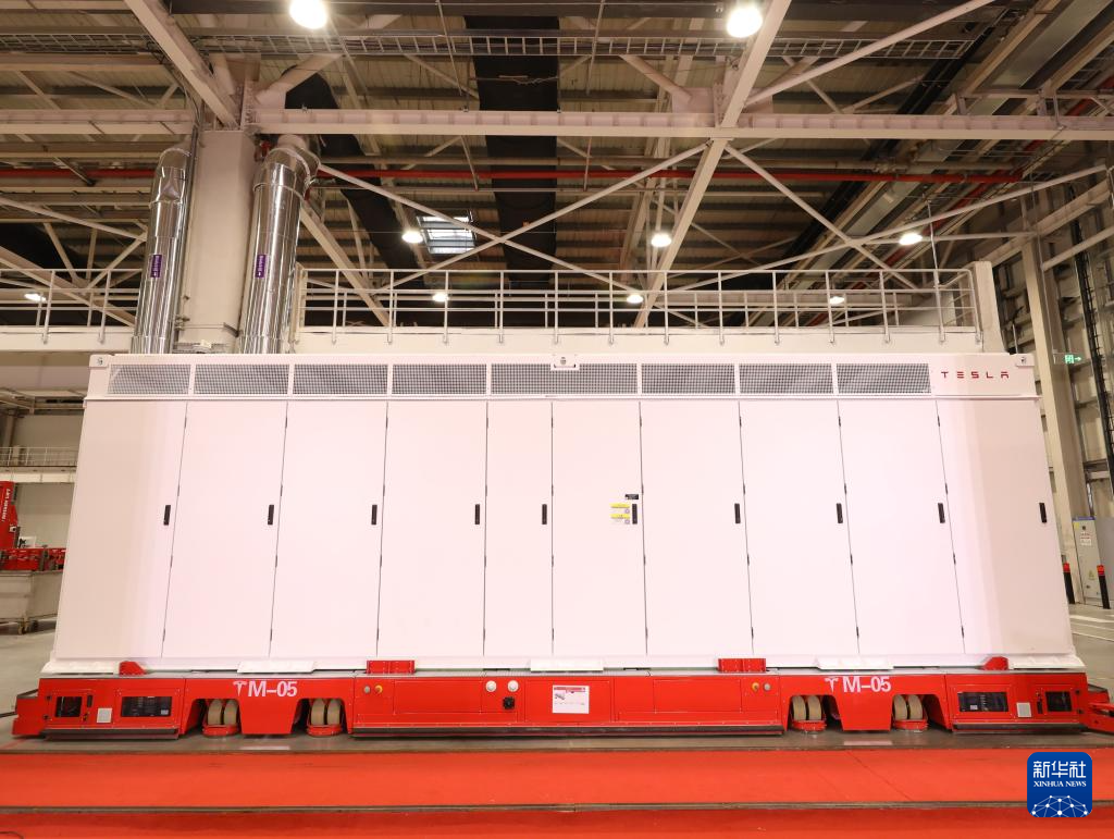 ▲这是2月11日在特斯拉上海储能超级工厂投产仪式现场拍摄的超大型电化学商用储能系统。新华社记者 方喆 摄