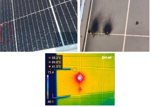 此外,研究还发现大多数问题都与热点形成有关,具体包括350个接线盒故障、282个玻璃破裂、42个接线盒膨胀和7个玻璃起雾或变色的情况。同时,还发现了树木、电线杆和建筑物等周围物体遮挡以及光伏阵列之间的自我遮挡问题。