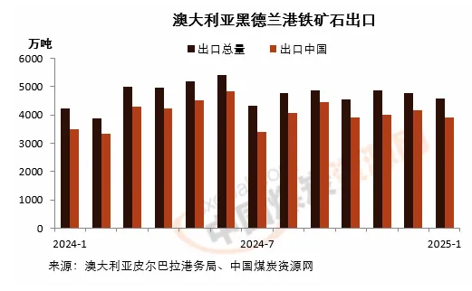 回顾2024年全年,黑德兰港铁矿石出口总量累计达5.69亿吨,同比增长2.60%。对中国的出口量为4.88亿吨,同比增长2.77%,占比86%。1月数据表明,中国仍是该港铁矿石出口的最大市场,尽管环比出现季节性回落,但同比增幅显示需求保持稳健增长。