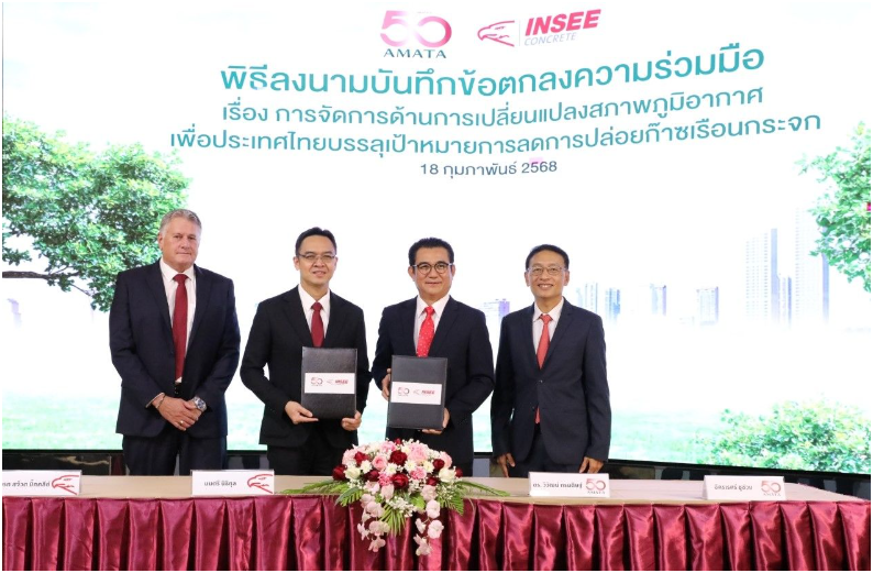 2月24日,暹罗城市混凝土有限公司(INSEE Concrete)与Amata Corporation PCL在泰国签署谅解备忘录(MoU),旨在通过推广可持续建筑材料,推动泰国向低碳经济转型。签约仪式由INSEE Concrete代表、暹罗城市水泥PCL代表Montri Nithikul先生与Amata Corporation首先技术官兼Viwat Kromadit博士共同完成。完成双方合作重点工业和基础设施项目,力求提升环保标准。