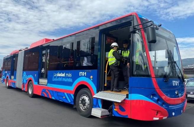 30 年前,厄瓜多尔首都基多建立了快速公交系统。主要穿过市中心,作为架空线路下的无轨电车。在这里,海拔 2,850 米,电力驱动被证明是主要柴油发动机的明智替代品,因为空气中的氧气含量降低,它们的效率明显低于其他地方。1995 年和 1999 年交付了 113 辆铰接式梅赛德斯-奔驰 O 405 GT 无轨电车,车身来自西班牙制造商 Hispano Carrocera,电气设备来自 Kiepe 和 Adtranz,自 1995 年至 2008 年分阶段开通以来,一直负责处理 BRT 线路的密集交通。他们在高架平台上无障碍停车。