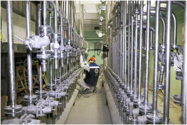 目前,放射化学工厂处理乏核燃料后产生的放射性废物被送至液态放射性废物集中贮存设施,并采用蒸发法进行处理。不过,为了进一步提升废物处理能力,第六台用于放射性废物玻璃化的电炉EP-250/6正在工厂进行安装。