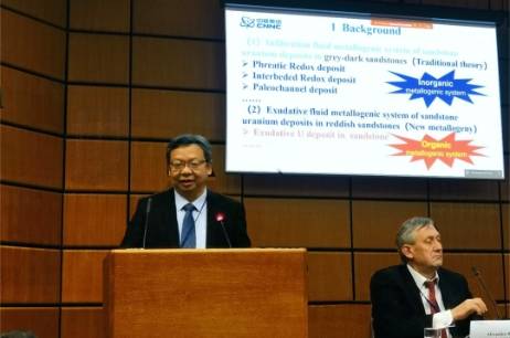 来自40多个国家100多位铀资源的国家代表和专家出席了会议,针对铀矿理论技术进展、勘查现状、核能发展与铀资源需求等议题进行了为期一周的交流讨论。中核集团首席科学家李子颖研究员应邀做大会特邀报告 “砂岩铀矿新的渗出铀成矿作用”(A New Exudation Metallogeny of Sandstone-Hosted Uranium Deposit),得到与会代表专家的高度评价和赞扬。铀组和大会主席玻拉克先生认为报告内容非常丰富,提出了新的砂岩铀矿理论模式,对找矿具重要意义。巴西、蒙古和坦桑尼亚等一些国家代表希望能加强合作,推动砂岩铀矿找矿突破。