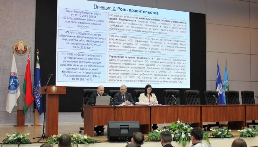 质量副总干事亚历山大·埃林宣布了国际组织(IAEA和WANO)的基本安全原则、白俄罗斯共和国立法的要求以及监管机构的监管文件。单独考虑了核能设施管理系统相关问题,重点提高了管理人员在白俄罗斯核电站机组运行中的作用。