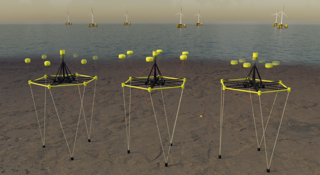 WEC 集群与浮动海上风电共置。图片来源:Blackfish Engineering