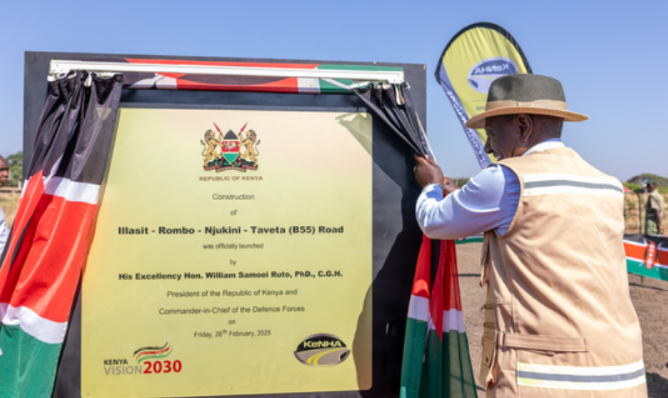 2月28日,肯尼亚总统鲁托到公司近日中标的塔维塔公路项目出席开工揭牌仪式,交通部部长戴维斯·奇尔奇尔、高速公路局局长等政府官员陪同,项目所在地泰塔塔维塔郡、卡加多郡郡长、国会议员及当地民众代表共同参加。