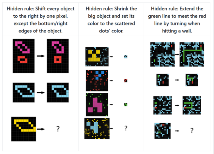 研究人员在抽象和推理语料库(ARC-AGI)上测试了他们的方法。ARC-AGI是由机器学习研究员François Chollet于2019年创建的视觉基准,用于测试AI系统的抽象推理能力。ARC提供了基于网格的图像谜题,系统需要通过几个示例推断出基本规则,并将其应用于新示例。