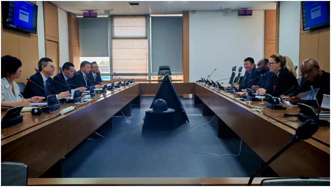 在科特迪瓦期间,张建安走访了非洲发展银行总部,会见了非洲开发银行投资组合执行与监督部总经理伊维特博士。张建安结合公司核心主业和比较优势,介绍了公司深耕非洲市场、服务非洲经济发展和民生改善总体情况,重点介绍了公司承建的非洲发展银行出资项目情况,表示愿意在非洲发展银行的支持下,进一步加强合作交流,共同探讨在绿色能源、基础设施等领域的深化合作,助力非洲发展。伊维特博士对张建安一行的来访表示热烈欢迎,对公司长期以来助力非洲基础设施发展提升予以高度赞赏,希望公司再接再厉,继续为促进非洲发展贡献智慧和力量。