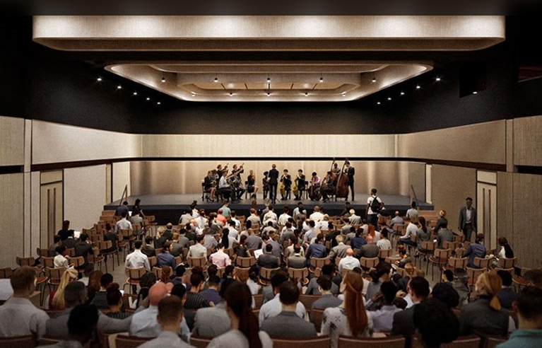 此次重建项目由Burwell Architects担纲设计,将引入创新的可拆卸电动隔断技术。这些隔断不仅能够将大厅分隔成三个不同的区域,同时保留其作为单一大型活动空间的功能性。隔断设计注重隔音效果,确保各部分之间的独立性,同时,最先进的AV系统将支持不同配置之间的无缝切换。
