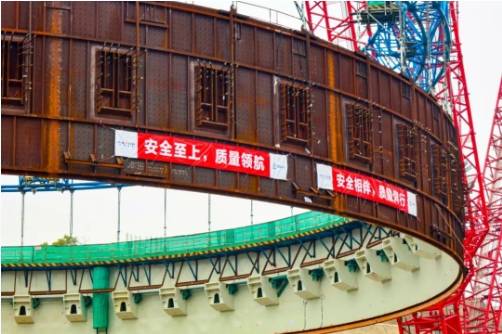 模块拼装过程中,将12块壁板与45件牛腿的高空拼装和焊接工作移至地面进行,大幅减少现场塔吊资源的占用,释放出更多垂直运输资源用于土建施工,大大降低了高空作业与交叉作业的安全风险,施工人员作业的便利性、安全性、舒适度均得到了有效提升,实现了本质安全,同时提高作业工效;整体拼装方案减少了累计误差,通过加强测量与变形监测,模块施工质量得到有效提升。
