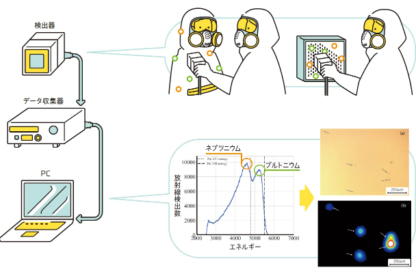 为了验证这一新型探测器的性能,JAEA与美国能源部(DOE)的萨凡纳河国家实验室(SRNL)展开了合作,进行了在日本难以开展的阿尔法尘埃实际样品性能验证测试。测试过程中,研究人员使用了含有两种不同能级的α发射核素——钚-238和镎-237的氧化物粒子样品。结果显示,该探测器能够现场实时识别和测量这两种核素,验证了其在实际应用中的可靠性和准确性。
