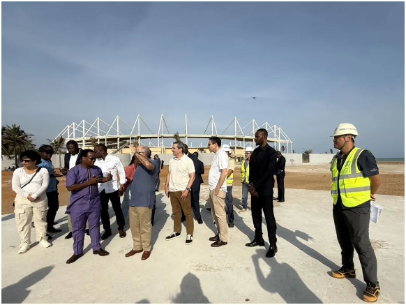 贝宁时间3月11日,贝宁外交部部长、巴西外交部部长,维达市政府相关工作人员,到云南建投集团承建的贝宁维达海滨文化剧场项目进行参观,项目部过硬的履约能力和工程品质得到考察团的一致好评。