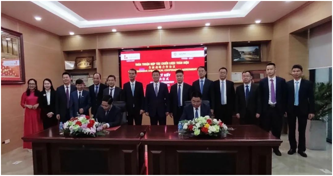 在越南龙山集团总部,中材国际(南京)与龙山业主正式签署《战略合作协议》。根据协议,双方将在水泥生产线转型升级、绿色低碳及新能源等领域深化合作,共同打造越南水泥行业数智化转型标杆项目。该协议的签署标志着中材国际在越南市场的业务从传统工程服务向“科技+绿色”综合解决方案的全面升级。