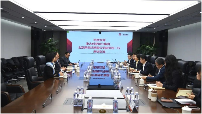 近日,澳大利亚琦心集团管理合伙人张涛与北京新世纪跨国公司研究所所长蒋姮一行到访中材国际。公司总裁朱兵热情会见,双方围绕澳大利亚水泥绿色低碳发展等议题展开深入讨论。公司副总裁隋同波,副总裁汪源出席座谈。