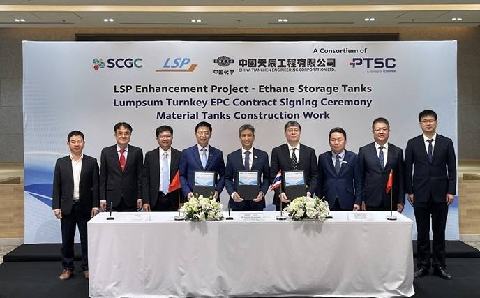 近日,中国化学天辰公司与泰国暹罗水泥化工集团旗下越南龙山石化有限公司签署了2×5.5万吨低温乙烷罐项目总承包合同(EPCC)。