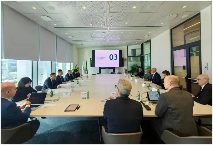 当地时间3月24日,中国化学董事长莫鼎革 在意大利会见塞班工程公司董事长亚历山德罗·普利蒂 ,双方就推动技术创新、工程建设等领域深化合作座谈交流。