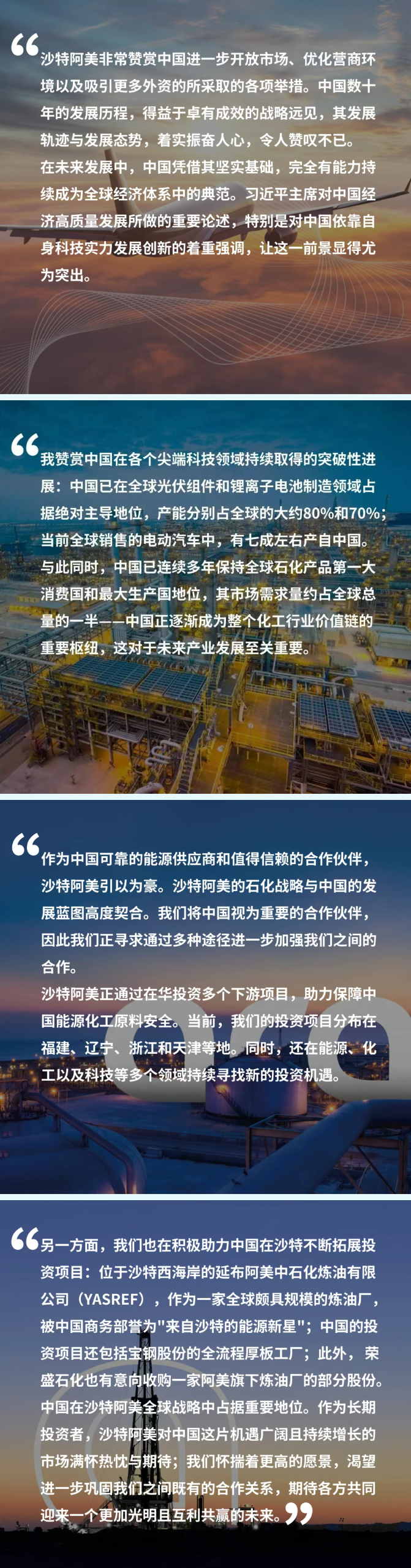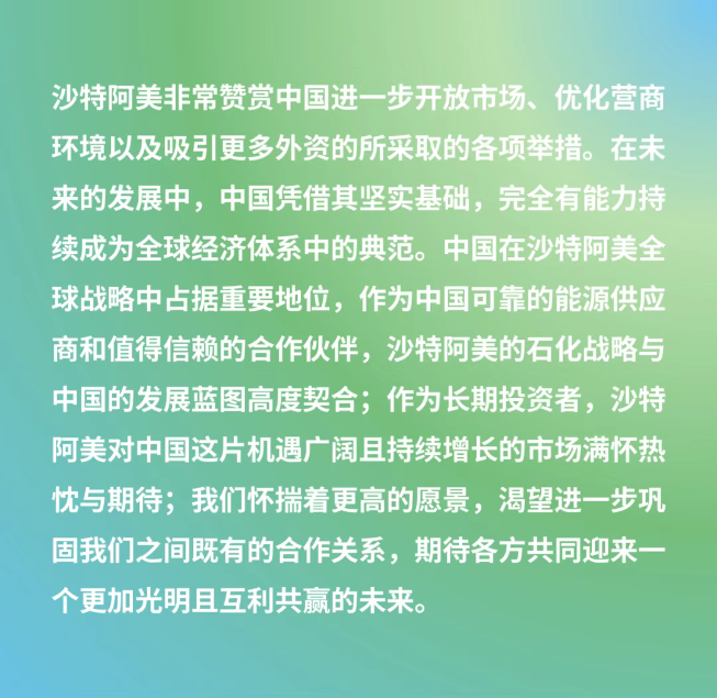 2025年中国发展高层论坛于3月23日至24日在北京钓鱼台国宾馆隆重举行。在24日举行的专题研讨会上,沙特阿美公司总裁兼首席执行官阿敏·纳瑟尔(Amin H. Nasser)发表重要演讲时强调: