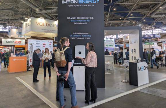 法国太阳能加储能企业 Imeon Energy 在里昂的 BePositive 贸易展上展示了其带有集成储能的 Neo 智能互联混合逆变器。