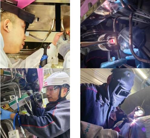 SMSA项目涉及的上游焊接技术文件多、规程规范庞杂,焊接文件准备工作量大,焊接施工过程管控严,焊接验收要求等级高。依据ISO、ASME、RCCMR多个标准体系,涵盖氩弧焊、电阻焊、螺柱焊三大类共6种焊接方法。项目部克服技术人员不足,进度紧张等困难,同心协力,积极应对,最终如期完成了首个扇段Sector 7吊装入坑前所有焊接任务,创造了连续数百只冷却管焊缝RT一次合格率100%,IVV大管道焊接角变形控制小于0.2°等良好成绩。