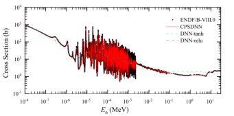 针对以上问题,原子能院核数据重点实验室创新地提出将机器学习算法——耦合相移深度神经网络方法应用于该领域,将中子共振数据在频域空间上从高频相移到了低频,快速高效地再现铀-235中子裂变截面3000多个共振峰与快中子能区裂变截面,在该领域研究取得重要进展。