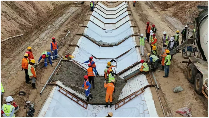当地时间4月5日,随着最后一方混凝土顺利入仓,库内内抗旱第4标段项目渠道首仓混凝土浇筑完成,标志着项目顺利由开挖转入混凝土施工的关键阶段。