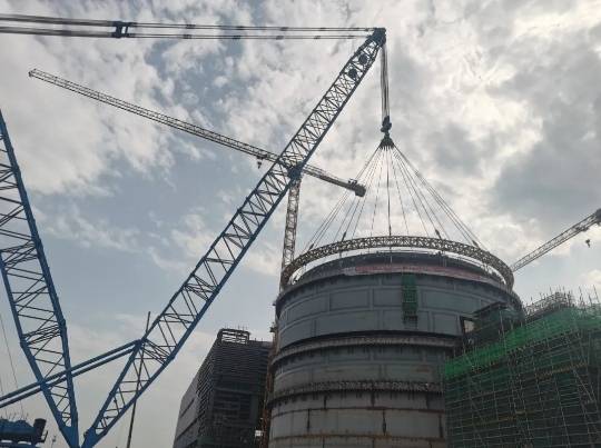 三门核电建设团队整体协同,全面贯彻中核集团“六大控制七个零”高质量精细化项目管理要求,在二期工程建设项目指挥中心(PCC)的统一指挥下,实施“六个一”一体化项目管理模式,采取项目负责人机制,建立SC8-10层就位日例会制度,恪守安全质量优先原则,强化技术创新,采取“顶升-运输-吊装-摘钩”全过程有限元建模分析、SC专用环形吊梁优化、集成式销轴测力仪实时应力监测等多项创新性技术保障措施,确保了本次吊装工作顺利完成。