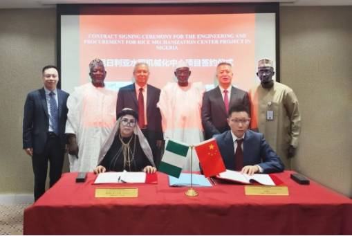 4月8日,在国机集团副总经理黎晓煜访问尼日利亚工作期间,中工国际与尼日利亚农业发展集团公司签署尼日利亚水稻机械化中心项目商务合同。本次签约是双方继共同合作的吉加瓦州农业机械化中心项目后,在尼日利亚农业领域的又一次重要合作。黎晓煜副总经理,国机集团总经理助理、中工国际董事长王博,中国一拖董事长赵维林与尼日利亚吉州州长马拉姆,尼日利亚农业发展基金首席执行官穆罕默德共同见证此合同的签署。