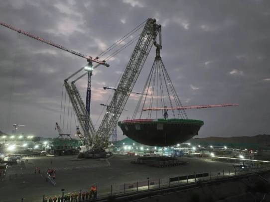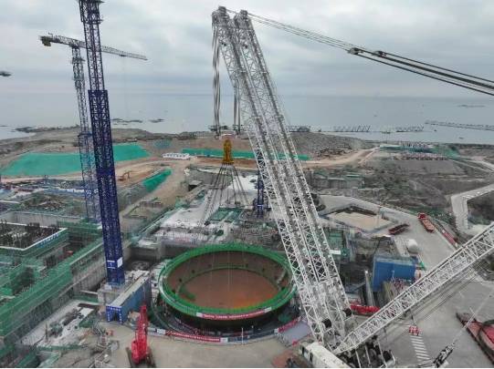 4月9日7时56分,中广核广东陆丰核电项目1号机组首个大型模块——钢制安全壳(CV)底封头在3200吨履带吊车的牵引下顺利吊装就位,这是1号机组自FCD以来实现的又一重大里程碑,标志着核岛反应堆厂房主体结构施工全面启动。