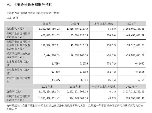 4月14日晚间,无锡双象超纤材料股份有限公司(以下简称“双象股份”)发布2024年年度报告,公司2024年实现营业收入22.90亿元,同比增长51.55%;实现归属于上市公司股东的净利润4.72亿元,同比增长754.84%;实现归属于上市公司股东的扣非净利润1.08亿元,同比增长138.77%。