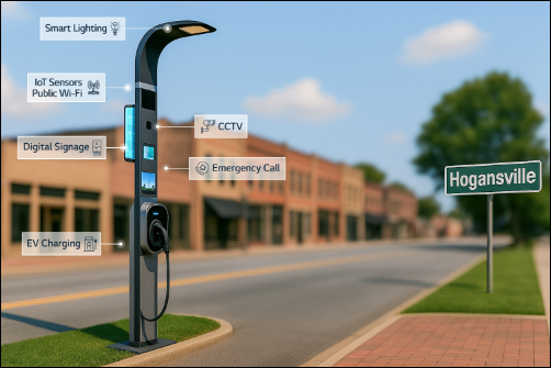 根据协议,LG CNS将在霍根斯维尔市中心及城市公园区域安装智能杆及集成控制系统,依托其在人工智能转型领域的技术优势,全面提升该市的公共安全、互联互通水平及城市运营效率。智能杆将传统街道与交通信号灯功能与先进物联网技术深度融合,配备照明控制、公共Wi-Fi、闭路电视监控及环境传感器等模块,实现交通状况与公共安全的实时监控,同时收集城市运行数据。控制系统将通过LG CNS专有的智慧城市平台Cityhub Building进行统一管理。