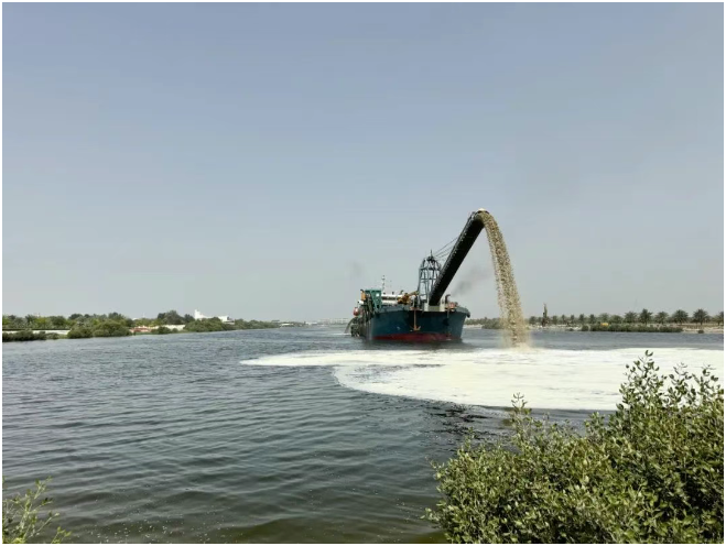 本项目为阿吉曼海滩一期工程变更工程,主要施工内容为外海取沙进行陆域吹填,计划吹填方量76.2万立方米,形成陆域面积11.06万平方米,项目建成后将用于别墅开发建设,具有重要的经济与社会价值。