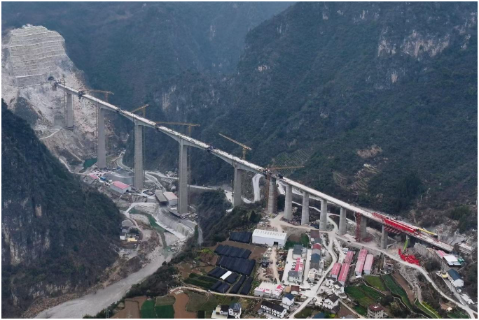 高岚河特大桥全长1029.8米,全桥共设计14个桥墩,其中最高桥墩高达124米,相当于41层高楼的高度。由于高岚河特大桥所处的位置为典型的喀斯特地貌,地下存在大量的溶洞,施工人员通过边打钻边注浆的方式,将溶洞里的缝隙填上填充物,再进行钻孔施工。工程建设克服高铁桥墩高、岩溶地层地质复杂等施工难题,建设时间长达4年。