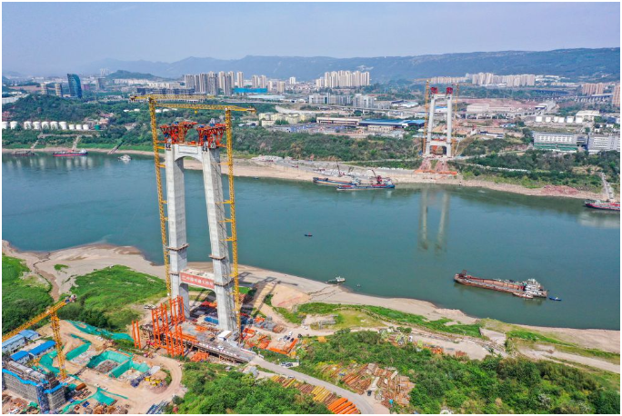 4月19日,由重庆城投集团投资,城投建设公司组织建设,中国铁建大桥局承建的黄桷沱长江大桥先导索经交通艇牵引跨越长江,大桥南、北两岸主塔顺利完成“牵手”。这一重要节点的突破,标志着黄桷沱长江大桥正式进入上部结构施工关键阶段,为后续猫道和主缆架设奠定了坚实基础。
